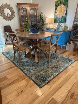 Rug has a golden hue, just what I wanted. The teal adds a nice contrast. Now I just need my special ordered chairs to make the look complete.