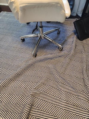 Extremely disappointed by the quality of this 'rug'. It's paper thin, and it bunches around just by walking on it. It's impossible to roll around with my.office chair. It's more comparable to a beach towel than an actual rug.