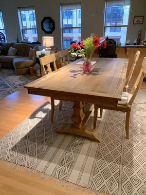 This rug is a stylish and sturdy addition to any space, offering a beautiful bohemian contemporary look. Made from 100% natural cotton, it features a unique hand-printed design that adds character. While some guests noted a musty smell and color discrepancies, many praised its quality, durability, and ease of cleaning. It fits well in various settings, making it a versatile choice for guests looking to enhance their home decor.