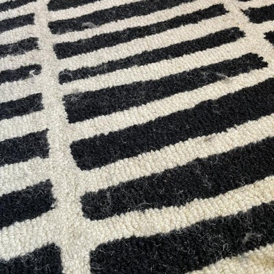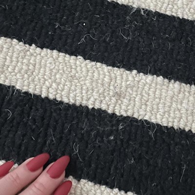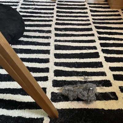 [This review was collected as part of a promotion.] This rug is stunning! Ordered for our entryway and we love it! It’s very soft and plush, looks amazing, high quality. It does shed a little, just a heads up — when I vacuum, the black likes to shed and I have to empty the vacuum more often because of that, but that’s it. It doesn’t shed on normal walking, sitting, anything like that. Just when vacuuming. The white color in the picture is not as white in person, but I was fine with that!