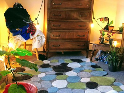 The stones are flatter than we thought they would be (but the instructions said they'd become more separate over time, so we will see!). The rug is cool, fun, and adds color and texture to our flat room.