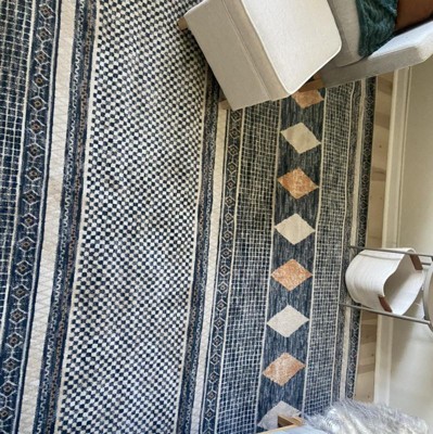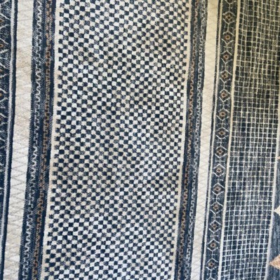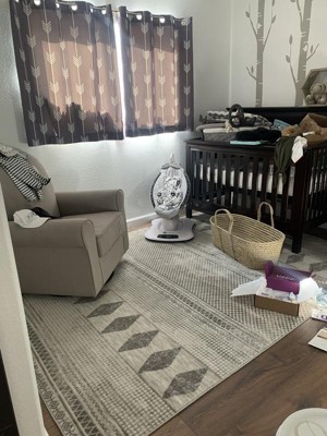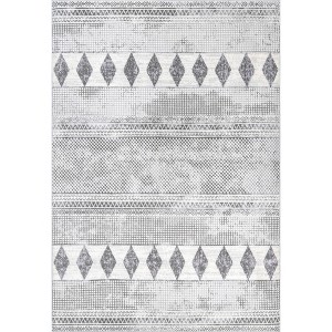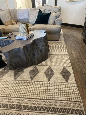 Embracing contemporary living, this geometric area rug showcases a tasteful juxtaposition of neutrals and a tribal-inspired print. Made with durable synthetic fibers, this rub is built to withstand regular foot traffic. Youll appreciate the subtle details that will make you take more than one glance at your new rug and will pair perfectly with any décor from modern to bohemian. Why wait to create the home of your dreams with our pet-friendly and easy to care for area rugs