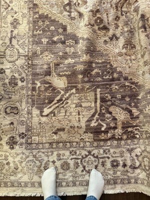 I regret not looking at the reviews, although i always do. The rug is awful color( in person looks dark and pink brown. The color on description is very pleasant and nice, but in person its feel like different rug. Do not buy if you are looking for lighter rug. Big SCAM with this rug