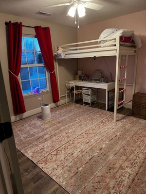 [This review was collected as part of a promotion.] Just painted my daughter’s room and updated her decor with some modern items. This rug fits perfect and is soft to walk on. Somewhat muted pattern but very pretty.