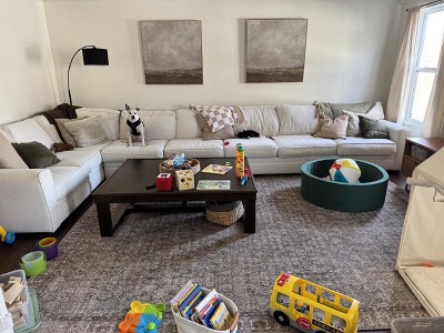 [This review was collected as part of a promotion.] We are happy with this rug - the jute material and the patterning are exactly what we were looking for in our living room. It fits nicely underneath and provides a nice complement to our coaches and coffee table.