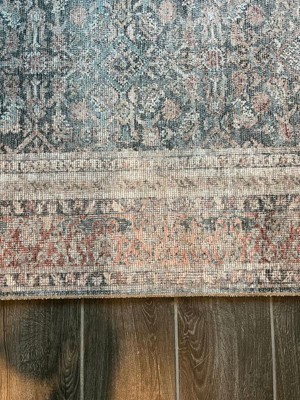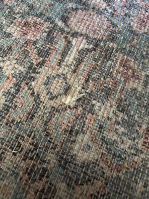 [This review was collected as part of a promotion.] I absolutely love this rug! It has a vintage look while still feeling brand new. The colors feature warm pinks and blues that really stand out. It is on the thinner side, but I’m not using a rug pad and it still works well. There is a small pull in the fabric already—likely because of how thin it is—but it’s not very noticeable. I am considering purchasing for another room.