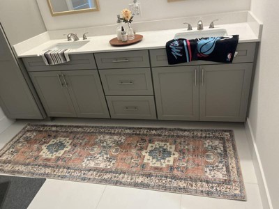 We bought the runner for our bathroom. I love how the design isn’t heavy with coloring yet provides a pop to our bathroom. The rug is easy to layout and remains in place.