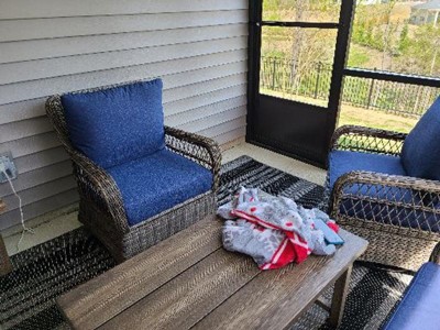 [This review was collected as part of a promotion.] This rug goes perfectly with my deck furniture and the decor around it. My concern is that the first rug is only three years old and has thinned out so much that you can see the nylon weaving throughout the rug. Because of the color and style of the carpet, this is the only rug I can utilize with your available selection. I'm just disappointed it has worn out in three years (& I take extreme care with items inside and outside of my home. I would have hoped it would have been far more durable..