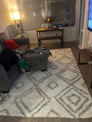 Indulge in the soft, plush feel of this cozy geometric shag area rug. The contemporary elements are designed to pull the various components of your room together effortlessly. Prized for their durability and ease of care, synthetic rugs are the perfect choice when spills and constant foot traffic are at the top of your mind. Create the home of your dreams with our easy to care for and pet-friendly area rugs.