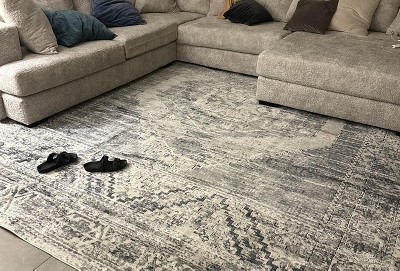 3rd times a charm , After going through three different rugs and not really finding the right one I was so excited when this one match perfectly with my home decor rug really matched perfectly I would recommend it for seeking gray / blue tones. Soft rug can’t beat that price