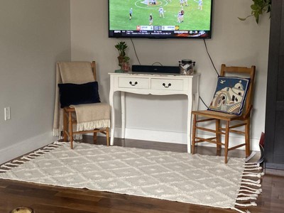 Channeling the feel of a cozy knit sweater with this Moroccan tasseled area rug. This floor covering features a hand-woven base with a distinctive raised motif and is finished with a series of generous braided tassels lining the ends. Place this rug in any room that could use a cozy touch and will blend seamlessly with any existing décor from modern to bohemian. Due to the handmade nature of this rug, each piece is marked by subtle but individual differences that make your rug unique. Create the home of your dreams with our easy to care for and pet-friendly area rugs