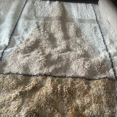 [This review was collected as part of a promotion.] Will hold the place until we get another rug. It’s nice and fluffy at first but once you get past the shag top, it’s just a thin line of plastic squares. That material has been pulled through not my favorite, but we’ll do until we get another rug.