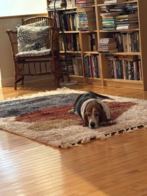 [This review was collected as part of a promotion.] This rug is spectacular and I am extremely happy that I made this purchase. The packaging was amazing. There is no way that a shark could have bitten through the package. This area rug is a great size for the entrance to my apartment. The abstract design is really nice. It feels great underfoot. I highly recommend this area rug.