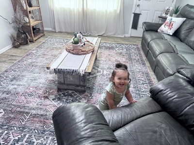 • Stain-Resistant Material: Our machine washable rugs are crafted from synthetic materials that are stain-resistant, lightweight, and easy to clean. The stain-resistant properties ensure that the rug maintains its vibrant colors and patterns, even after enduring the demands of everyday use. If your rug is located in an area that receives direct sunlight, regularly rotate your rug to maintain its appearance.