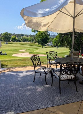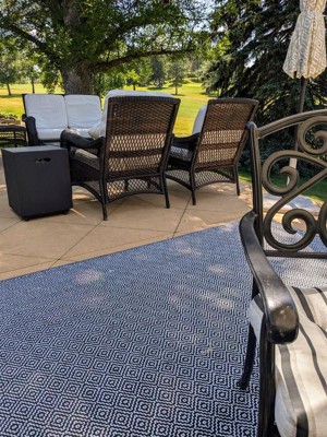 [This review was collected as part of a promotion.] I was looking for an indoor/outdoor rug to place under my patio dining room table during the summer months and this rug is perfect. It came in a very large size so ample room for table and 8 chairs. Grandkids love playing on it. It is beautiful and 100% cotton so if it gets wet it dries nicely and fast. In the winter months I'll just roll it up and store it in the garage. Have gotten many,many compliments.