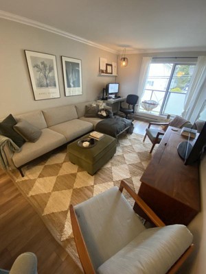 It looks great and arrived quickly (and I’m in Western Canada). Overall I’m very happy. I would say that I don’t necessarily know if it’s worth the price, given that you can find jute rugs for a couple hundred dollars. However if it is the aesthetic you’re going for, it’s great! I would recommend getting an underlay for the rug, as it does slip on wood floors (even with heavy furniture on top) and it would provide a little more cushion, as the rug is not super thick.