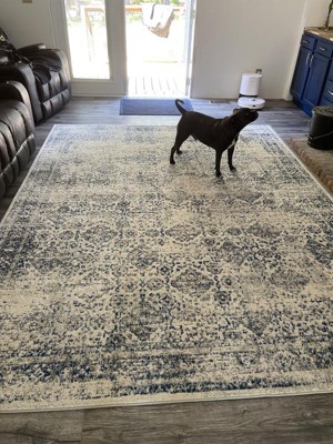 Great rug, the blue is a little more royal blue, not navy blue but overall we love it