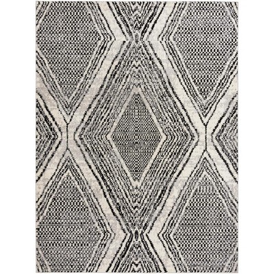 A: The rug features a simple yet chic geometric pattern, suitable for contemporary décor.