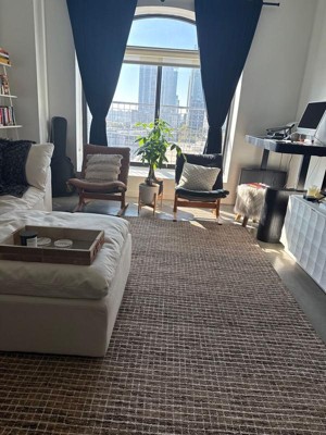This rug has received positive feedback for its quality, thickness, and aesthetic appeal, making it a great addition to various spaces like living rooms and entryways. Guests appreciate the natural fibers and the soft feel underfoot, while some have noted color discrepancies compared to online images. Despite some concerns about shedding and odors, many guests find it a stylish and functional choice for their homes.