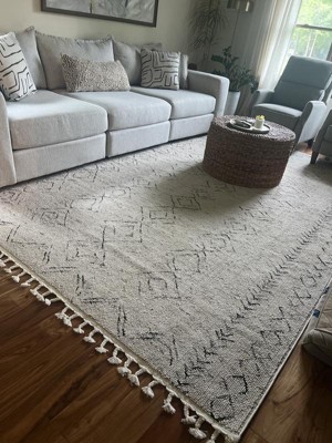 Guests appreciate the rug's unique design and sturdy construction, highlighting its comfort and versatility for various living spaces. The neutral oatmeal color complements different decors, while the tassels add a stylish touch. Many guests find it easy to clean and maintain, making it suitable for high-traffic areas. However, some noted that the color may appear different than expected, and a few experienced issues with snagging.