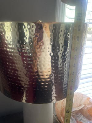 [This review was collected as part of a promotion.] This lamp is very pretty A good size The gold lamp shade has a hammered look Very attractive