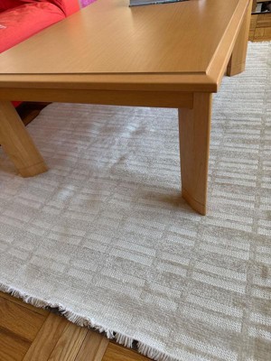 • A: The rug has a low pile height, making it sleek and easy to clean, suitable for high traffic areas.