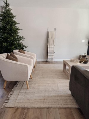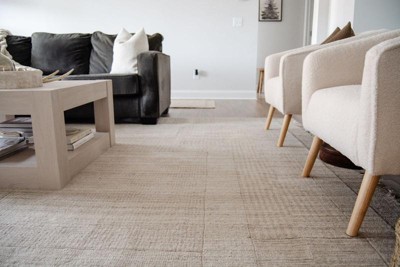I am very impressed with this rug! Going from a printed super low pile rug to this beautiful wool-blend was a night and day difference! It’s soft underfoot with the perfect thickness, especially with the rug pad, and the design and details of it are stunning. I wanted a neutral tone that would fit my organic modern aesthetic and the subtle handwoven pattern detailing really elevates it. I also love that I haven’t seen it all over the gram so it feels like a hidden gem! What really sold me was that it’s made to be pet-friendly and good for high traffic areas since the living room gets a ton of play-action with my dog! Highly recommend. (shown in beige 9x12)