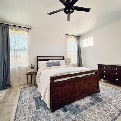• Stain-Resistant Material: Our machine washable rugs are crafted from synthetic materials that are stain-resistant, lightweight, and easy to clean. The stain-resistant properties ensure that the rug maintains its vibrant colors and patterns, even after enduring the demands of everyday use. If your rug is located in an area that receives direct sunlight, regularly rotate your rug to maintain its appearance.