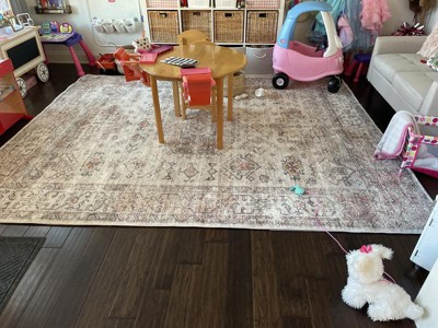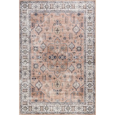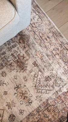 [This review was collected as part of a promotion.] The other reviews are accurate - this is a super soft rug! I put a 1/2" memory foam rug pad underneath and it is so cushy. The peach color is not strong, and there are hints of sage green. It's really lovely (I was hoping it wouldn't be too peachy and was glad about the result). Do note that it is a *printed* rug, which I think is partly why it's able to be so soft - meaning the colors are not going all the way through the fibers - they are printed on top. I don't know how it will hold up in the long run due to this, but the price was good and I'm willing to take the risk given how soft it is compared to other cheap synthetic rugs out there. I figure if some of the printing wears a bit it should still blend into the vintage look fairly well. BTW, this is a nuLOOM rug in reality - sold under RugsUSA brand. You can find it other places under the name nuLOOM Parisa.
