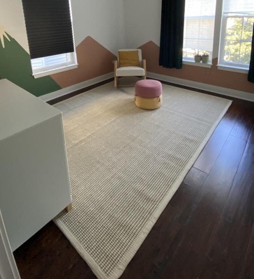 I am so pleased with this rug! It is high quality, good materials and such a great, neutral base. Don’t use a roller brush on it, and spot clean as needed. I get so many compliments on it when people walk into the room!