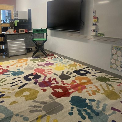 This vibrant classroom rug featuring colorful children's handprints is a delightful addition to any playroom or educational space. Guests appreciate its soft texture, ease of cleaning, and the cheerful atmosphere it creates. While some noted it could be thinner than expected, many found it to be a great value for its quality and design. Perfect for brightening up rooms and providing a comfortable area for kids to play.
