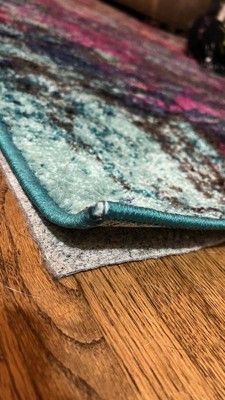 beautiful rug - love the colors & abstract-ness that will hide any stains. our dog went to town running on it as soon as we got it rolled out, & it held up well to her tearing around!