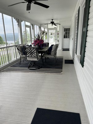 Always tricky ordering a rug online because you want to be sure the look and feel will match your space. Well this one exceeded my expectations! Huge rug for our outdoor deck! And so far holding up really well in the cold and rain. Hopefully can withstand the sun this summer as well! :)