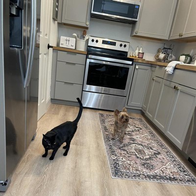 Love the colors of this vintage inspired rug. Using it as a kitchen rug and so far no complaints. It doesn’t slide around and the fact that it’s machine washable is great!