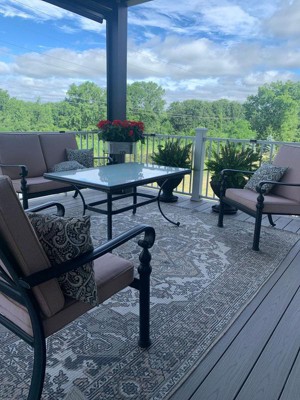 - Outdoor Rug Care Instructions: Easy to care for, simply shake out your outdoor rug to remove any light dirt or debris and spray your area rug with a hose for stubborn stains. This is the perfect patio rug or front porch rug to elevate your home.