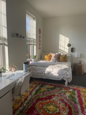 Rug took about a month to come but was so stoked when it came! The only thing is that the colors are not as vibrant as the image, especially the ones on the listing, the saturation was definitely turned up a bit which was disappointing, but overall I love the rug and it looks great in my room