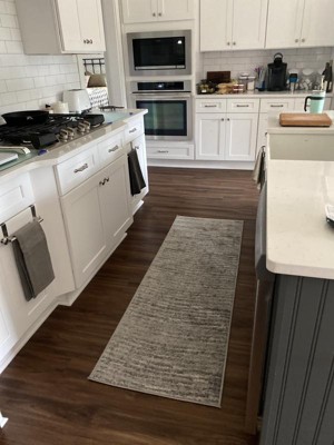 Just a touch of color in my all white kitchen with gray island… soft to walk on! Takes a few days to smooth out after unpacking it, but that’s no problem!