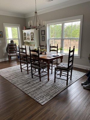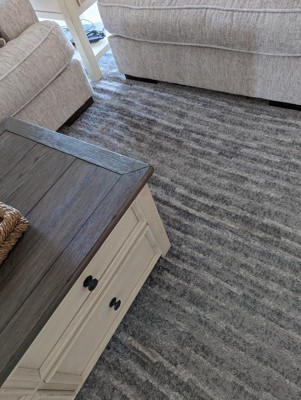 [This review was collected as part of a promotion.] We love the rug. Perfect for a family with Kids/Pets. I would say there is more black than the photos but we liked that as it adds more of a pop from the gray.