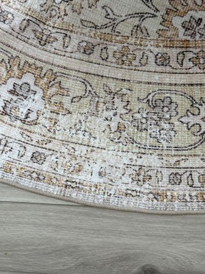 Product Name: Nuloom Sia Spill Proof Treated Vintage Floral Pet Friendly Premium Machine Washable Area Rug, Round 6', Beige