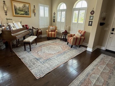 - Stain-Resistant Material: Our machine washable rugs are crafted from synthetic materials that are stain-resistant, lightweight, and easy to clean. The stain-resistant properties ensure that the rug maintains its vibrant colors and patterns, even after enduring the demands of everyday use. If your rug is located in an area that receives direct sunlight, regularly rotate your rug to maintain its appearance.