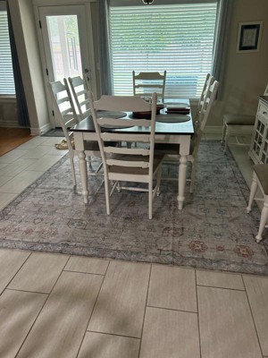 [This review was collected as part of a promotion.] This is perfect for our dining room! We have tile floors making it challenging to push the chairs. Now we have no problems with the beautiful rug under the table and chairs. It adds character to the room. We love it!