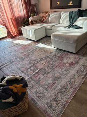- Stain-Resistant Material: Our machine washable rugs are crafted from synthetic materials that are stain-resistant, lightweight, and easy to clean. The stain-resistant properties ensure that the rug maintains its vibrant colors and patterns, even after enduring the demands of everyday use. If your rug is located in an area that receives direct sunlight, regularly rotate your rug to maintain its appearance.