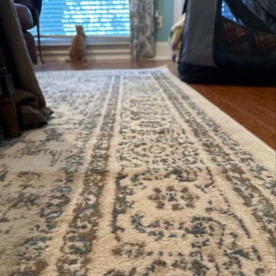 [This review was collected as part of a promotion.] If you do not have full sunlight in the room for this rug, I would advise you to be cautious because the cream in this rug looks VERY yellow. The print looked a bit cheap as well.