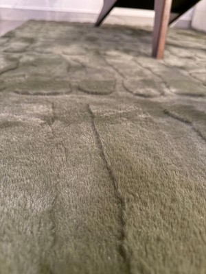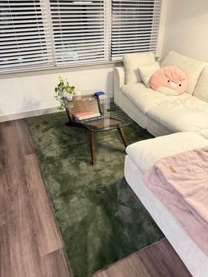 [This review was collected as part of a promotion.] Color matches photo. I love the deep green. White dust does stand out due to the color, but it’s more motivation to keep it clean.The rug is really soft and I love the feel of it. With socks on it does get slippery though.