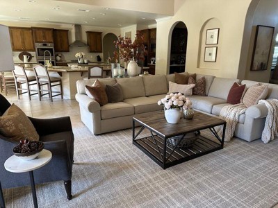 [This review was collected as part of a promotion.] My son recently bought his first home, we purchased this for his office space. It is a great neutral rug! I was worried it would lean a little gray but it did not. It was actually the perfect shade of sand/tan.