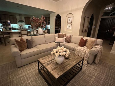 Our rug arrived last week. It appears to be good quality so far with a decent amount of thickness so I felt like we didn’t need a rug pad. There is a smell to the rug that I’m hoping goes away the longer it’s been unrolled. However, beware this rug is very much gray. I had planned for this rug to be a warmer tone as it’s advertised as sand but it is a very cool toned gray.