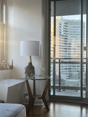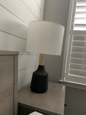 [This review was collected as part of a promotion.] A nice tall lamp with a white shade. Love the wood with the black ceramic. Perfect in our modern farmhouse design.