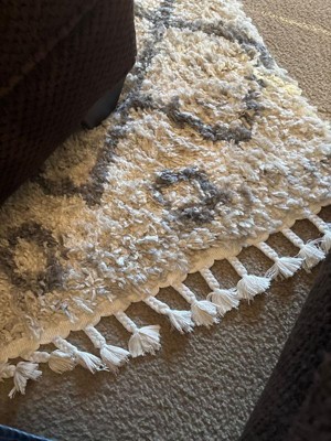 It’s a very soft rug, and looks good with my area rug so I’ll keep it. It doesn’t look bad, but definitely does not look like the picture. Instead of definitive diamonds like our area rug has this looks more like the gray and white are just spread throughout the rug, just a hint of an actual pattern. It also came rolled up which took forever to flatten, and big stickers on each end that weren’t attached to actual packaging but the rug itself. This took forever to peel off of the long shag-like rug without actually destroying it.
