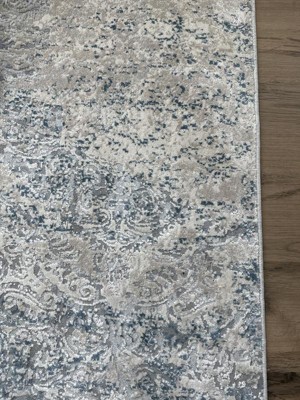 [This review was collected as part of a promotion.] Really liked this rug. Good color, pretty neutral but with a bit of blue to add color. The pattern is also more evident than in the picture, which is nice (but still fairly subtle). Struggled a bit with the corners staying down, but after putting a bit of weight, they straightened out
