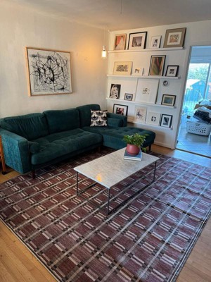 [This review was collected as part of a promotion.] Honestly, I’m really getting tired of all of the vintage floral looking rugs and weird patterns. I thought this one was really interesting and it brings a little more color into my life. It is a little more burgundy than rust in person. Is it my dream rug? No. But it’s kinda cool.